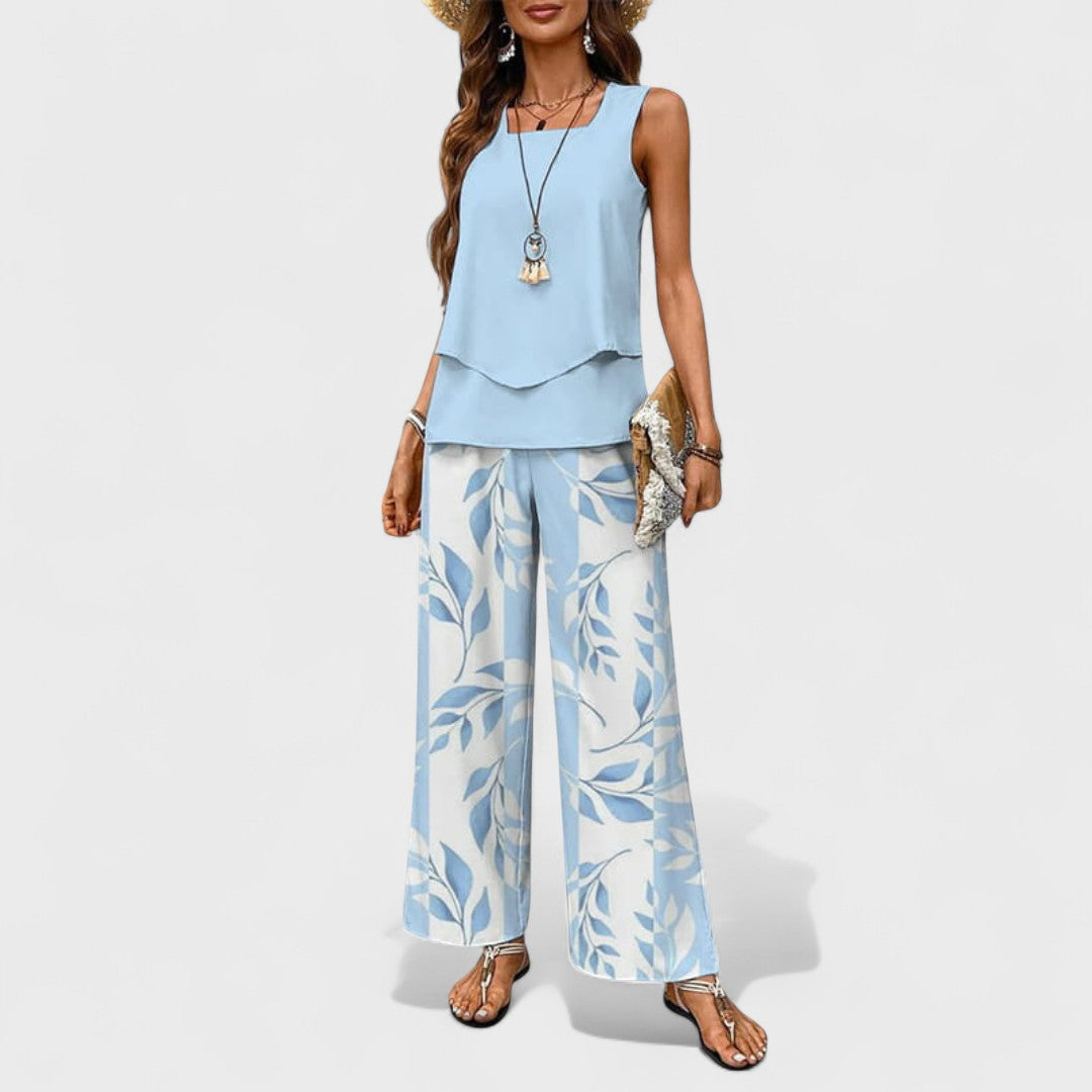 Valeria - Veste ar ziedu malām un garajām biksēm