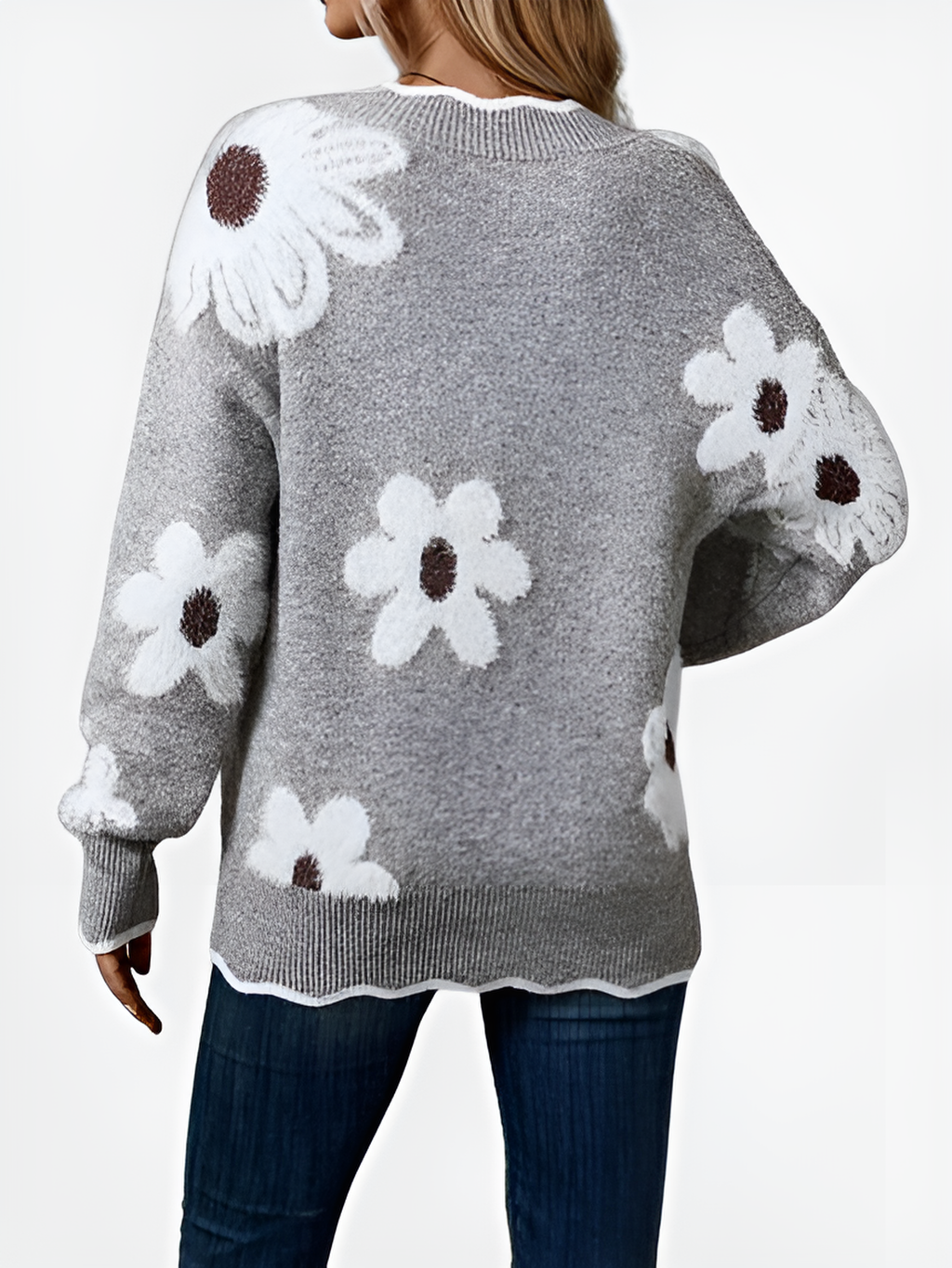 Kas padara mūsu ziedu raksta džemperi tik ērtu un iemīļotu?