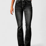 • Pieguļošs Griezums: Šīm biksēm ir pieguļošs griezums gurnos un izplestā apakša, eleganti izceļot jūsu siluetu.